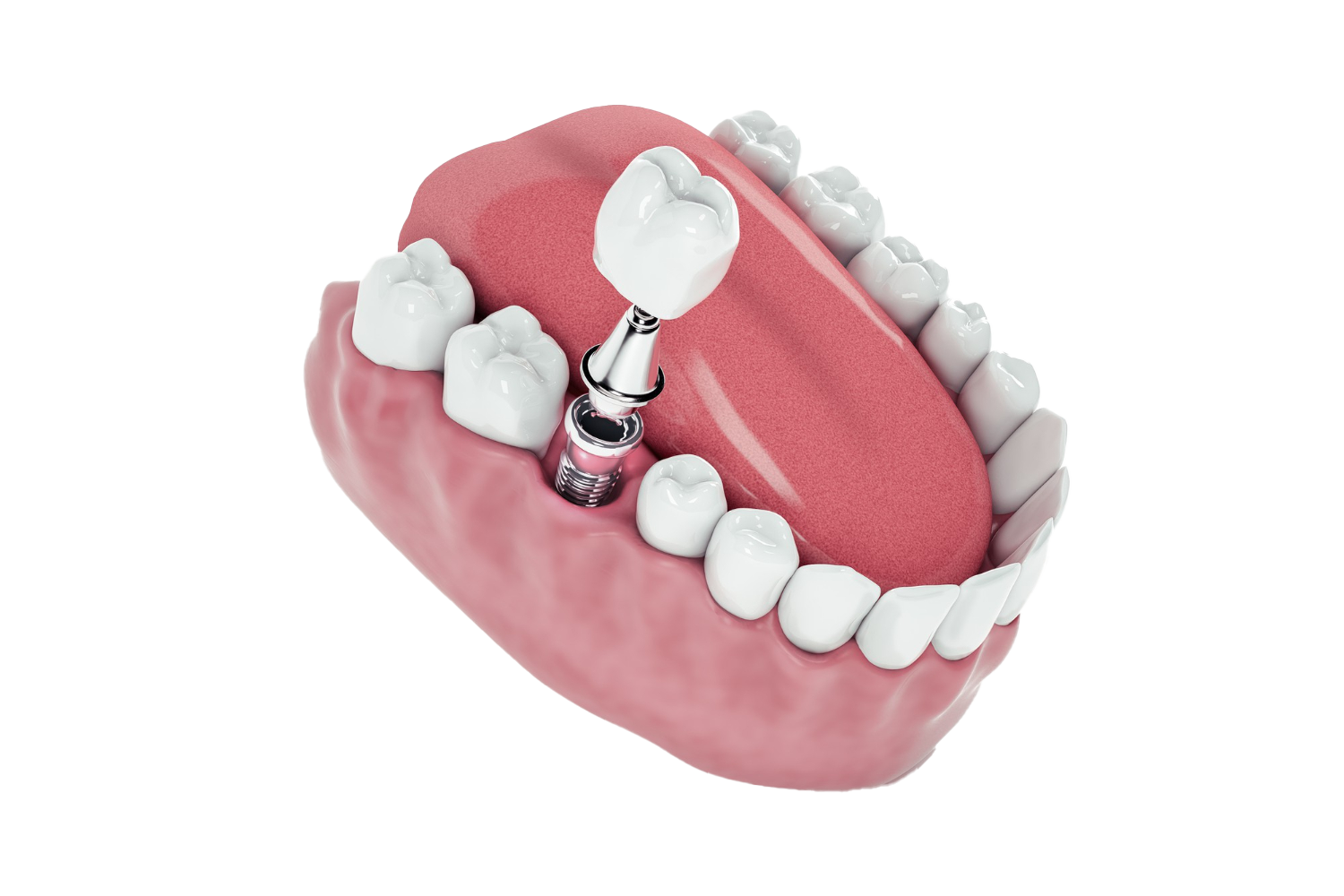 Искусственный корень зуба (имплант) устанавливается в костную ткань челюсти. Этот имплант служит основой для установки коронки, которая будет выглядеть и функционировать как обычный зуб долгие годы.